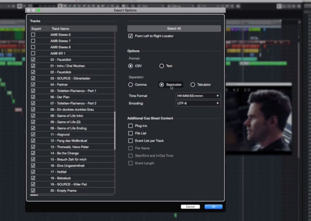 Nuendo 10.1版本也新增了提示表导出功能,能够从项目中提取信息或数据,并将其保存为文本文件,通常以表格或电子表格的形式。通过使用提示表导出,可以创建项目中使用的所有音乐片段或画外音片段的报告,以便在将它们集成到其他系统中时进行记帐或作为参考。