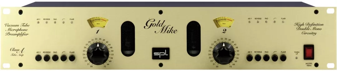 GoldMike 9844是SPL公司经典的电子管话筒放大器,声音温暖醇厚,可使用FLAIR功能改变声音的空气声频段,增强轮廓感和高频柔滑度,并配合清晰度和还原度极高的NT2000话筒,音色互补,浑厚大气。