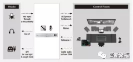 在Monitor矩阵里面,我们还可以完成一般监听控制器做不到的事情。在很多录音棚内,乐手的监听是一个比较大的问题,如果遇到乐队排练,可能更是一个比较棘手的问题。一般的监听控制器乐手返听的信号源只有一个,而乐手是想要在这Mix里面更多地听到自己演奏的声音,每个乐手才会更多的听到自己演奏的正确性,所以MMP1设置了4组立体声Cue Studio,而且可以对每个Cue进行声音分配,进行独立监听调整。(当然,可以作为一个强大的乐队排练系统,在录音室和控制室之间录音和排练)