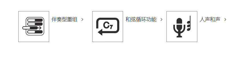 和声循环功能,让您能够录制一段和声进行并播放出来,此时您的左手不再需要弹奏和弦,进行更自由、更灵活的演奏表现。
