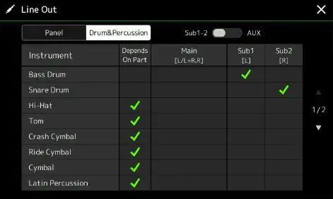 PSR-SX900 拥有四个辅助线路输出接口,可在各种环境中连接扩声。您可尝试通过单独的超重低音扬声器来传输低音,以呈现更丰富且更强大的低频音效,或将指定的声部与打击乐器的声音传送到外接控制台,以进一步塑造您想要的音效。