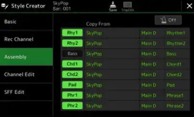 伴奏型由许多乐器声部组成,例如鼓、贝斯、吉他、钢琴等。在伴奏型重组功能中,您可以轻松探索、试听和组合任何伴奏的各个声部,创作属于您个人的专属伴奏。