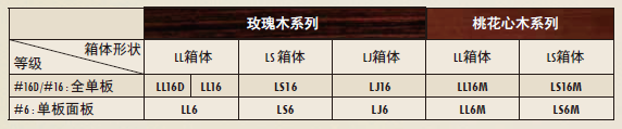 背板及侧板 单板玫瑰木(LL16 ARE、LL16L ARE、LL16D ARE、LL16-12 ARE、LJ16 ARE)/单板桃花心木 (LL16M ARE)