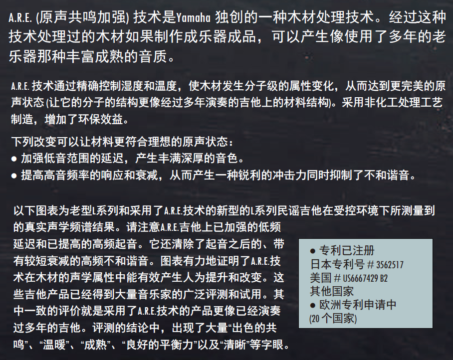 LL系列拥有雅马哈传统的琴体结构(琴箱尺寸100-125mm)。能够体现出色的平衡感和美丽的透明音色