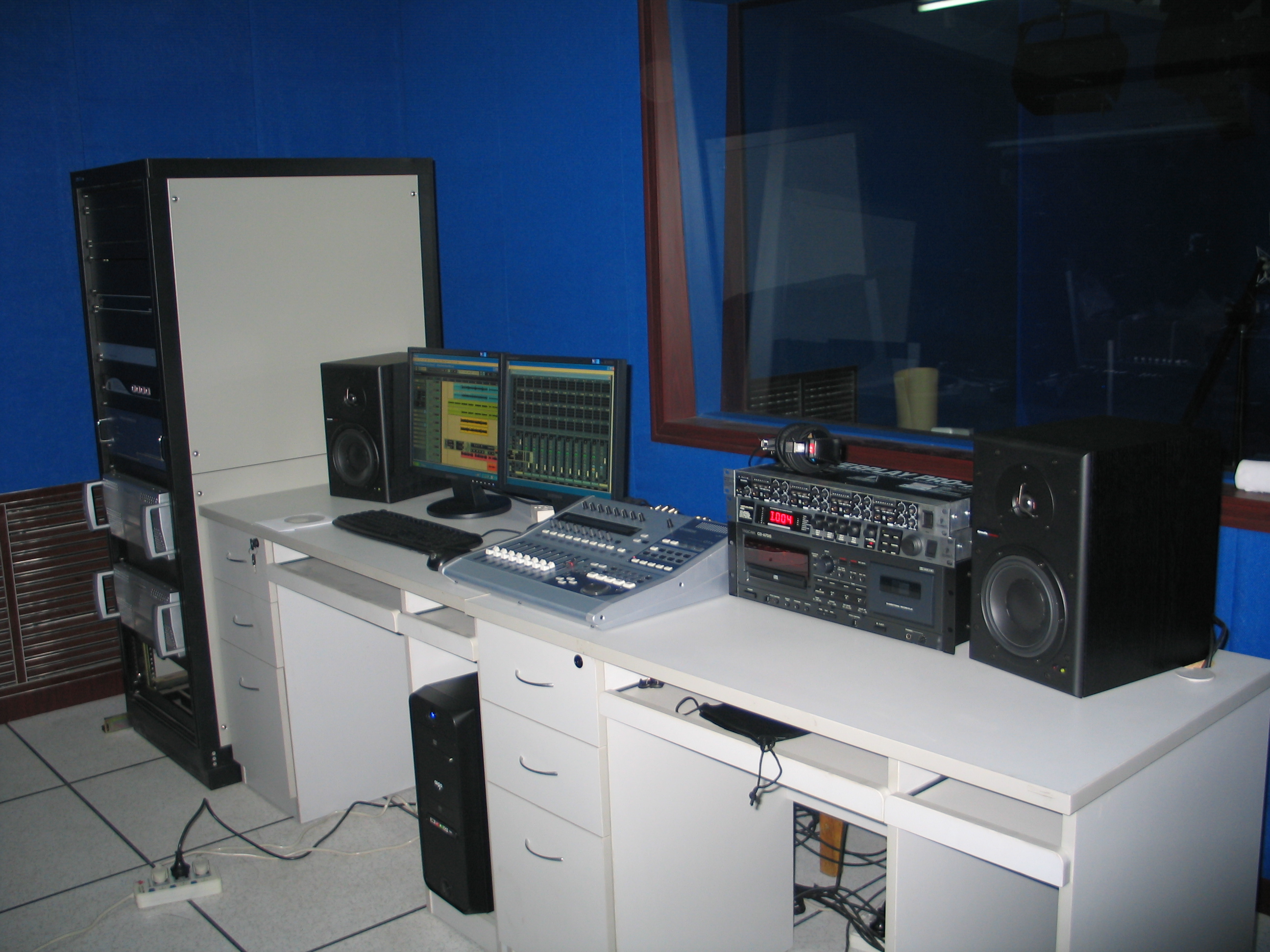 该演播室录音系统使用YAMAHA MLAN技术的01X为主核心。真正实现了高性价比,和扩展性。较低的价位却满足了学校的全部要求。