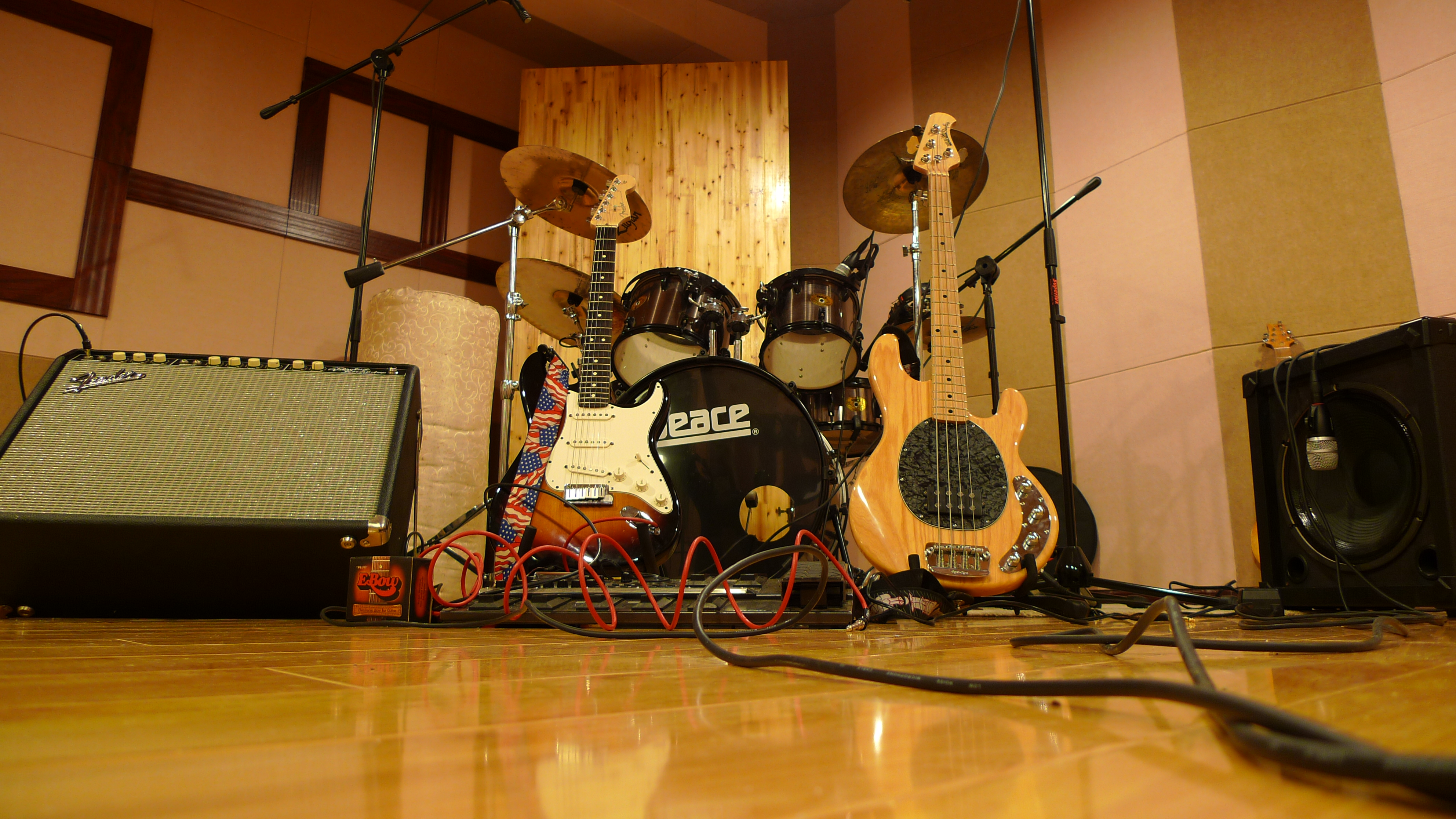 该录音室录音系统采用了德国的NEUMANN U87大振膜顶级电容话筒和SHURE的PGDMK6专业乐器录音话筒套装。