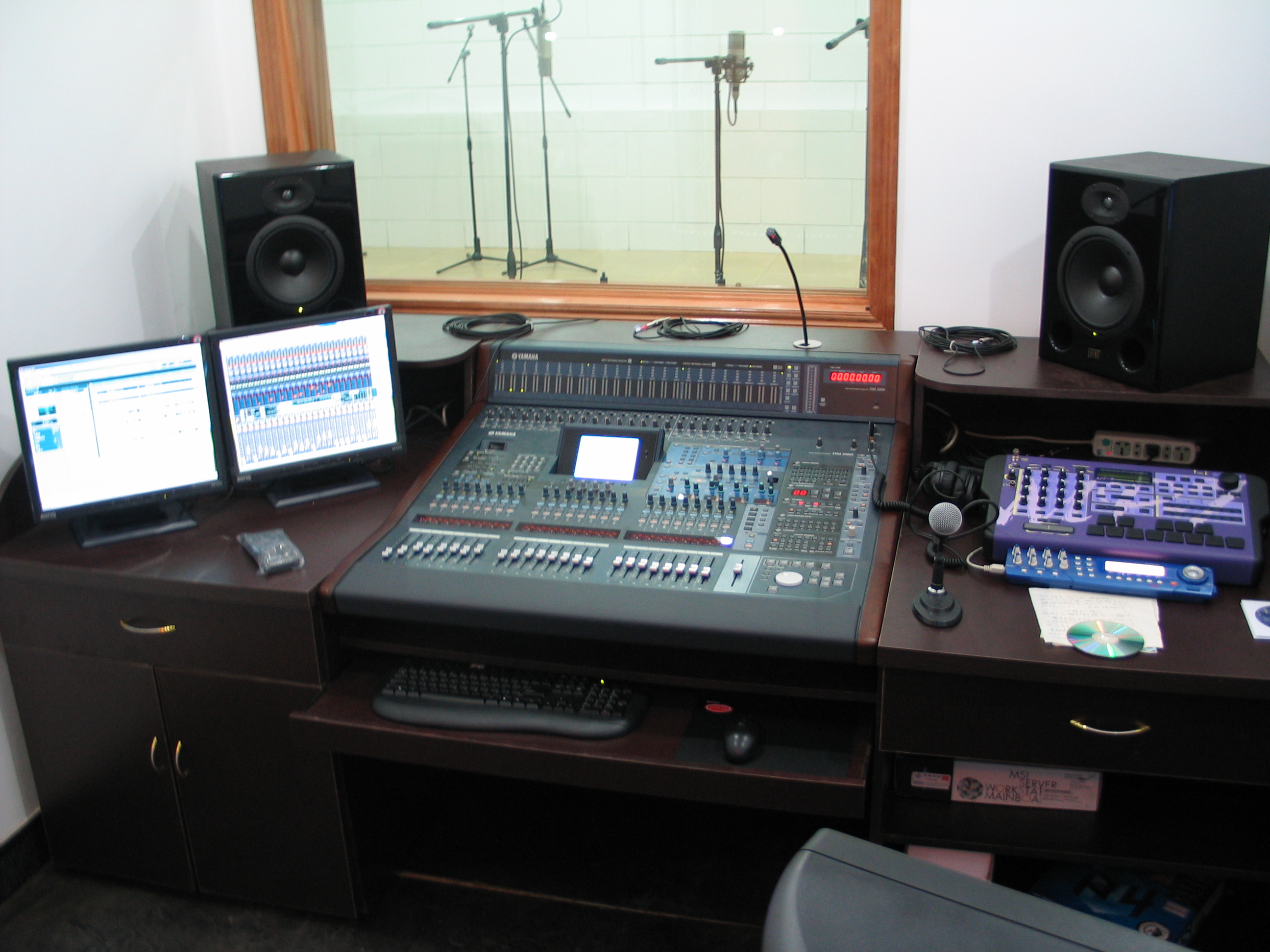 此系统使用YAMAHA的DM2000V2数字调音台和RME MADI系统为主核心。在调音台扩展ADAT光纤卡后实现64进64出的数字输入输出。现实硬件混音功能、调音台与工作站同步遥控功能、多轨录音功能、5.1制作等功能。