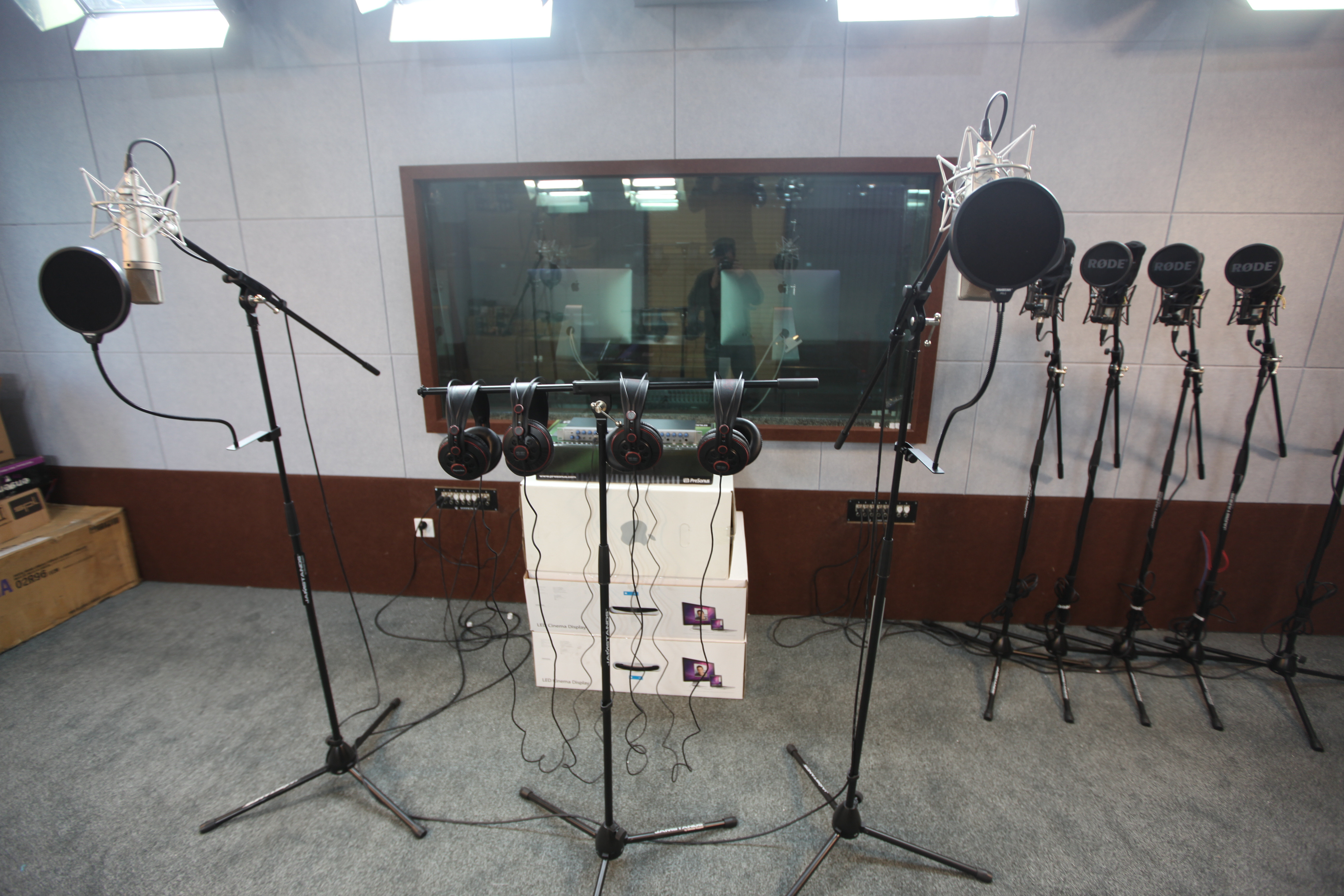 Apogee Ensemble(合奏)数控多通道音频接口为工作核心。顶级的YAMAHA MOTIF XS8编曲工作站能更充分的激励音乐人的创作灵感。录音部分采用了业界中广为好评U87大震膜电容话筒和RODE NT1A电容话筒以及SPL MK2专业双通道电子管话筒放大器。