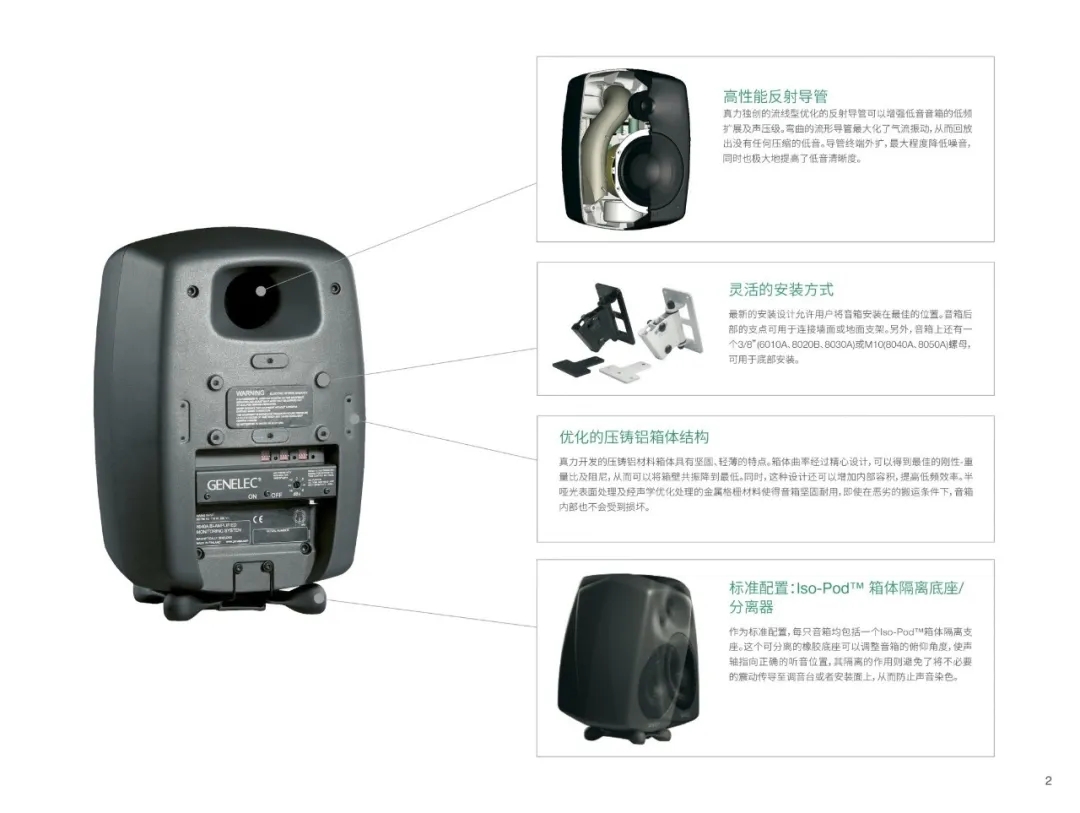8030可与7360低音音箱组成紧凑而强大的立体声、多声道环绕声监听系统。