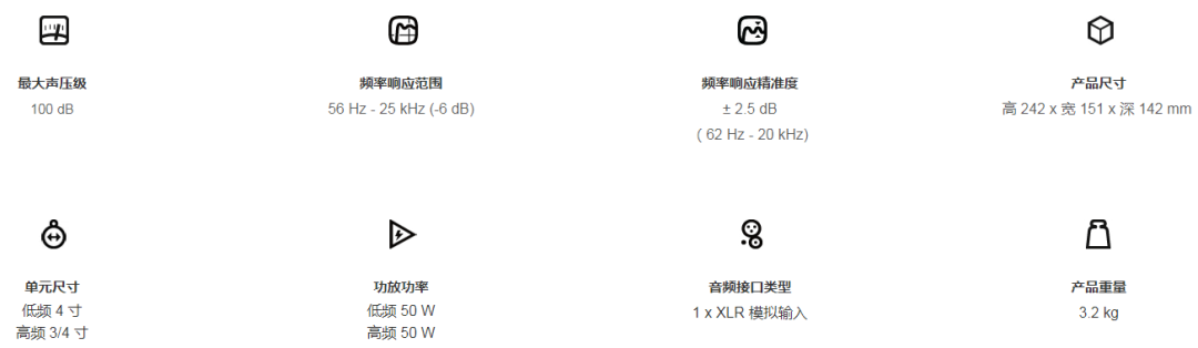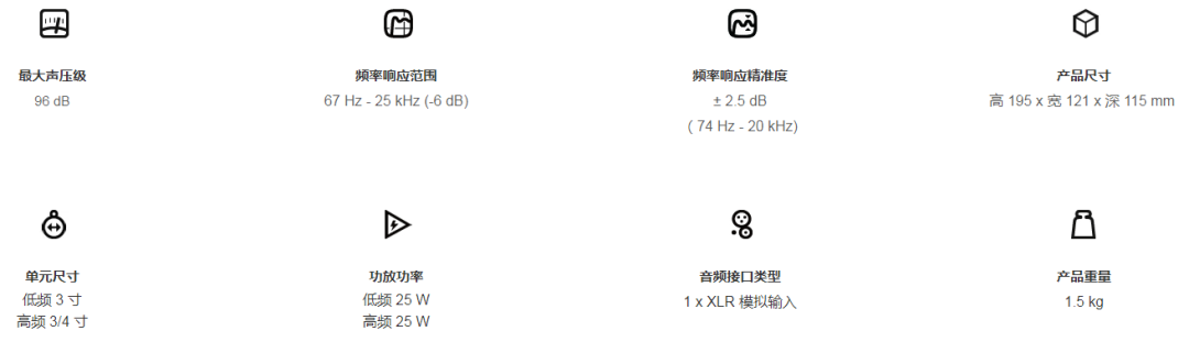 它拥有3英寸的低频单元和0.75英寸的高频单元,尺寸仅为19.5cm x 12.1cm x 11.6cm,以极为小巧的体积实现了极高的声学性能,成为同尺寸音箱中无可置疑的佼佼者,是小型制作环境、转播车、移动工作的理想选择。