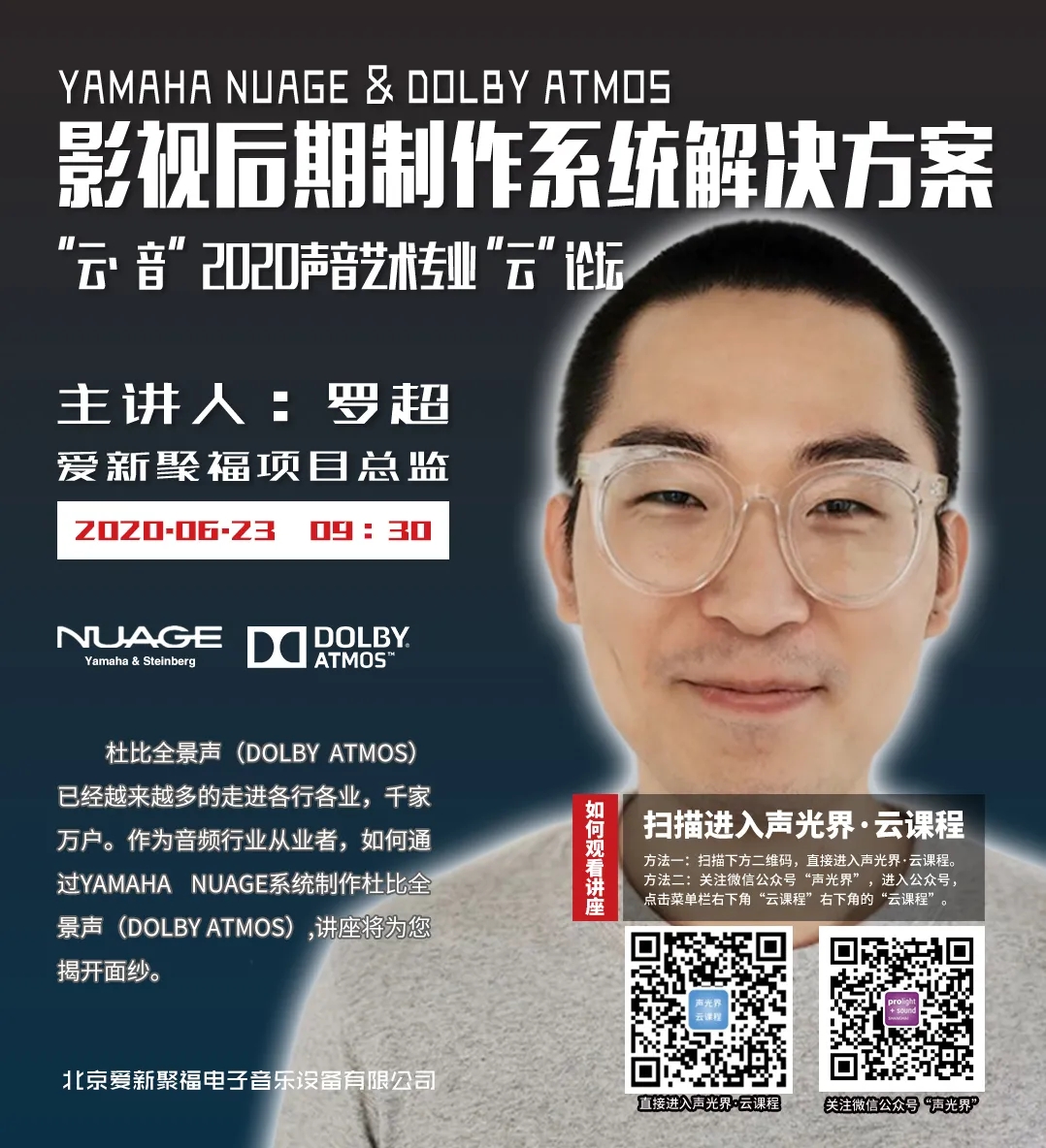 杜比全景声(Dolby Atmos)已经越来越多的走进各行各业,千家万户。作为音频行业从业者,如何通过Yamaha Nuage系统制作杜比全景声(Dolby Atmos)?爱新聚福项目总监罗超将为您揭开面纱。