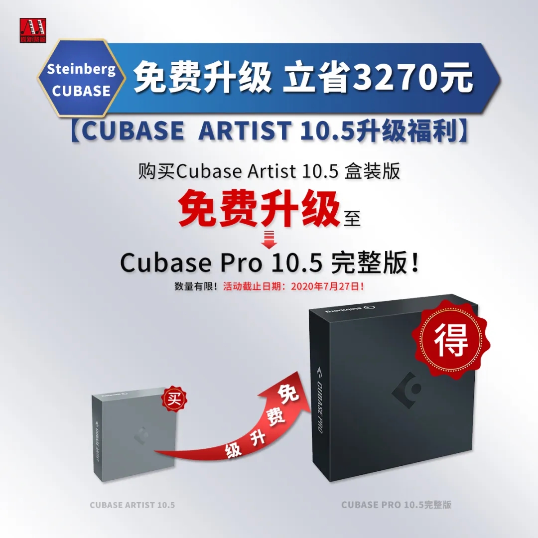 即日起订购CUBASE ARTIST 10.5(艺术家版本)产品,并于7月27日之内安装激活使用,即会自动升级为CUBASE PRO 10.5专业版本。