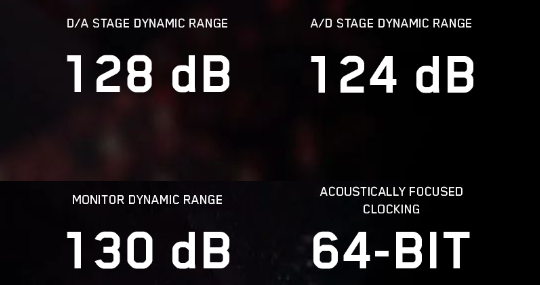 Galaxy 64 Synergy Core采用高品质转换器,能够带来极低的总谐波失真和极高的信噪比。AD端的动态范围为124dB,而DA端则为128dB,同时具有独立监听DA转换器 - 此转换器与我们专业的母带AD/DA转换器中的DA模块相同,能够带来130dB的动态范围 - 这是此类设备或系统中的最高表现。因此,Galaxy 64 Synergy Core不需要外部转换器即可实现高精度的监听,并且没有任何声音染色和信号损失。