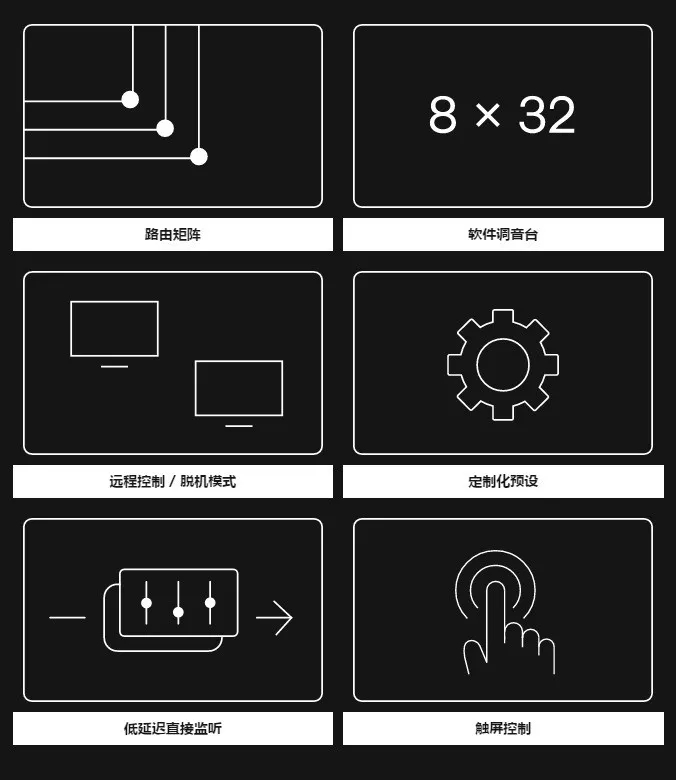 • 定制化的预设,包括信号路由、增益调整、调音台设置和sub-mix;