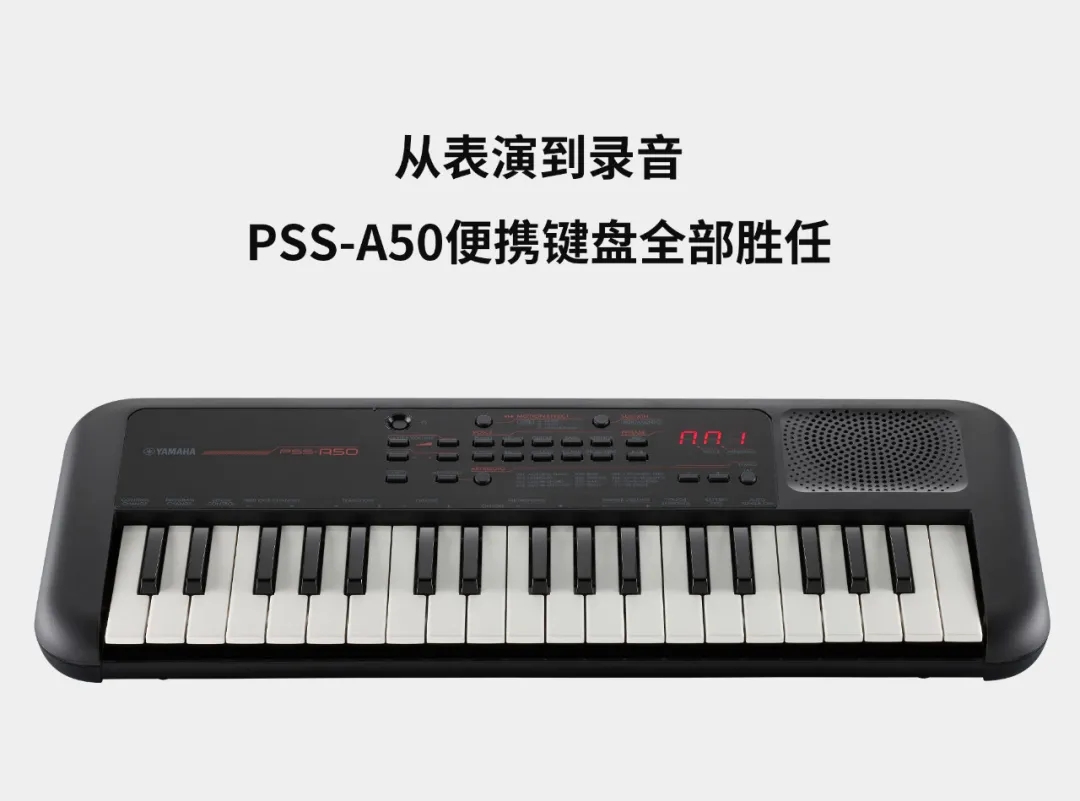 PSS-A50高品质的迷你键盘继承自雅马哈reface系列合成器,因其出色的触键感和表现力而受到专业人士青睐。