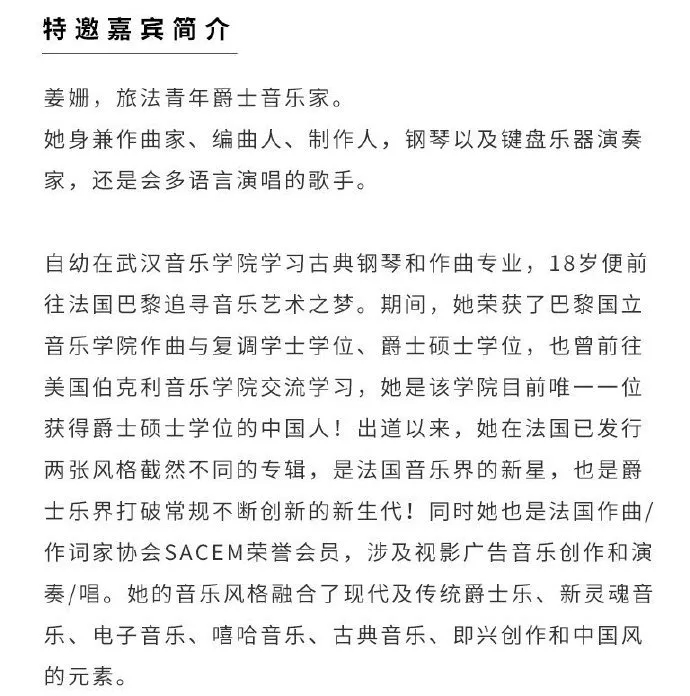 姜姗,雅马哈合成器签约艺术人。 旅法独立音乐人, 唱作人, 键盘手,Jz Music艺人。