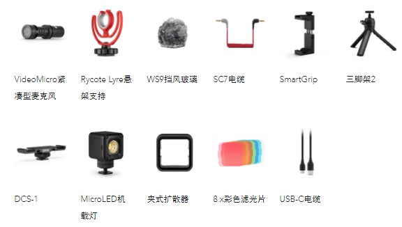 还有一个Universal Edition,其中包括一个RØDE VideoMicro,用于配备 3.5mm输入的智能手机,如旧款iPhone和Android机型。也可使用经认证的适配器与配备Lightning和USB-C的智能手机一起使用。为每个人准备的Vlogger Kit。