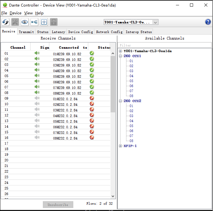 Dante Controller中CL3 SMPTE-2110组播流的接收