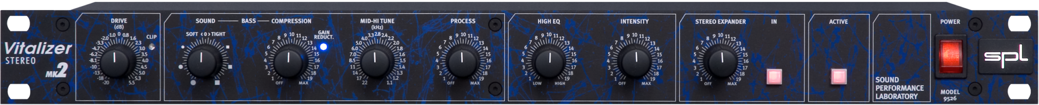 Stereo Vitalizer? MK2基于晶体管技术,它已经成为录音棚及和现场扩声的标准设备,采用了SPL Vitalizer?专利技术,特点包括:简便直观的操作,通过主输出或分组输出的插入口,出色的信噪比,柔化与强化低音并带低音压缩器,中频、高频及泛音处理,多种输入电平,立体声展宽,继电器式旁路,平衡接口(XLR或TRS接口)。