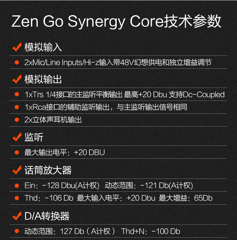 Zen Go声卡的总线供电经过全面优化,几乎可以在任何地方进行超低延迟的录音、高分辨的播放、创意节奏的制作和网络直播。