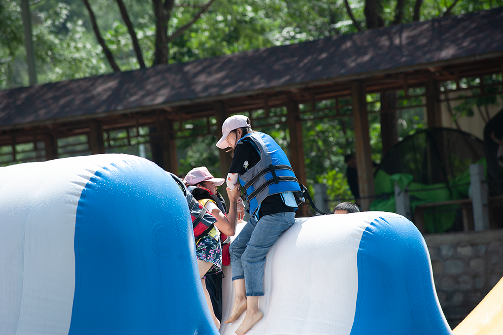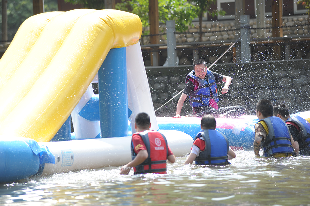 “水上大闯关”等比赛对挑战者的体力和协调能力要求较高,必须心中抱有勇往直前、永不放弃的意念。比赛是形式,但结果并不是输赢,四个小组的实力不相上下,各有千秋,我们比的不是高低,而是在这个过程中,你收获了什么,感悟了什么,思考以前的工作方式与行为模式为工作带来了怎样的推动力;是否会有上传下达,为执行力带来了怎样的影响。通过此次拓展训练,各个小组看到了本组的优劣势,同时也感受到了合作与沟通的重要性,这为以后的工作奠定了很好的基础。同事们在实践锻炼中学习,在体验学习中改变,受益匪浅,有了更多的人生感悟。在体验着奉献、协作、勇气带来的成功喜悦后,每个人深刻感受到“责任、协作、自信”的精髓,以及作为团队中的一员所要承担的责任。而此时,在紧张的工作与压力之下,亲近大自然,感受青山绿水,放飞心灵,提高工作效率,调动工作热情和积极性,为公司的人文建设及可持续发展提供了坚实的基础。
