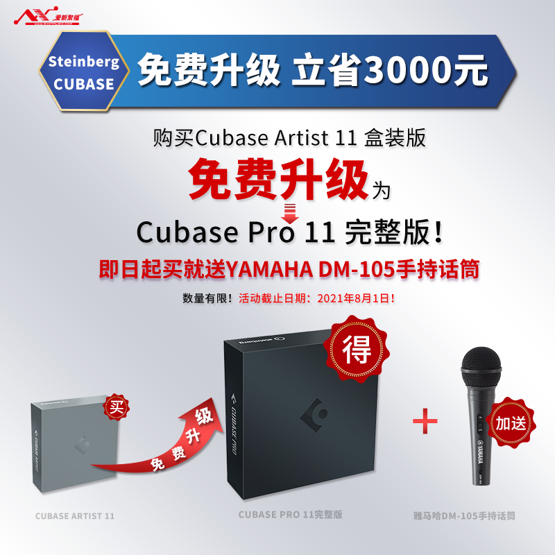 即日起订购CUBASE ARTIST 11 艺术家版本,并于2021年8月1日之前激活软件,即会自动升级为CUBASE PRO 11 完整版。