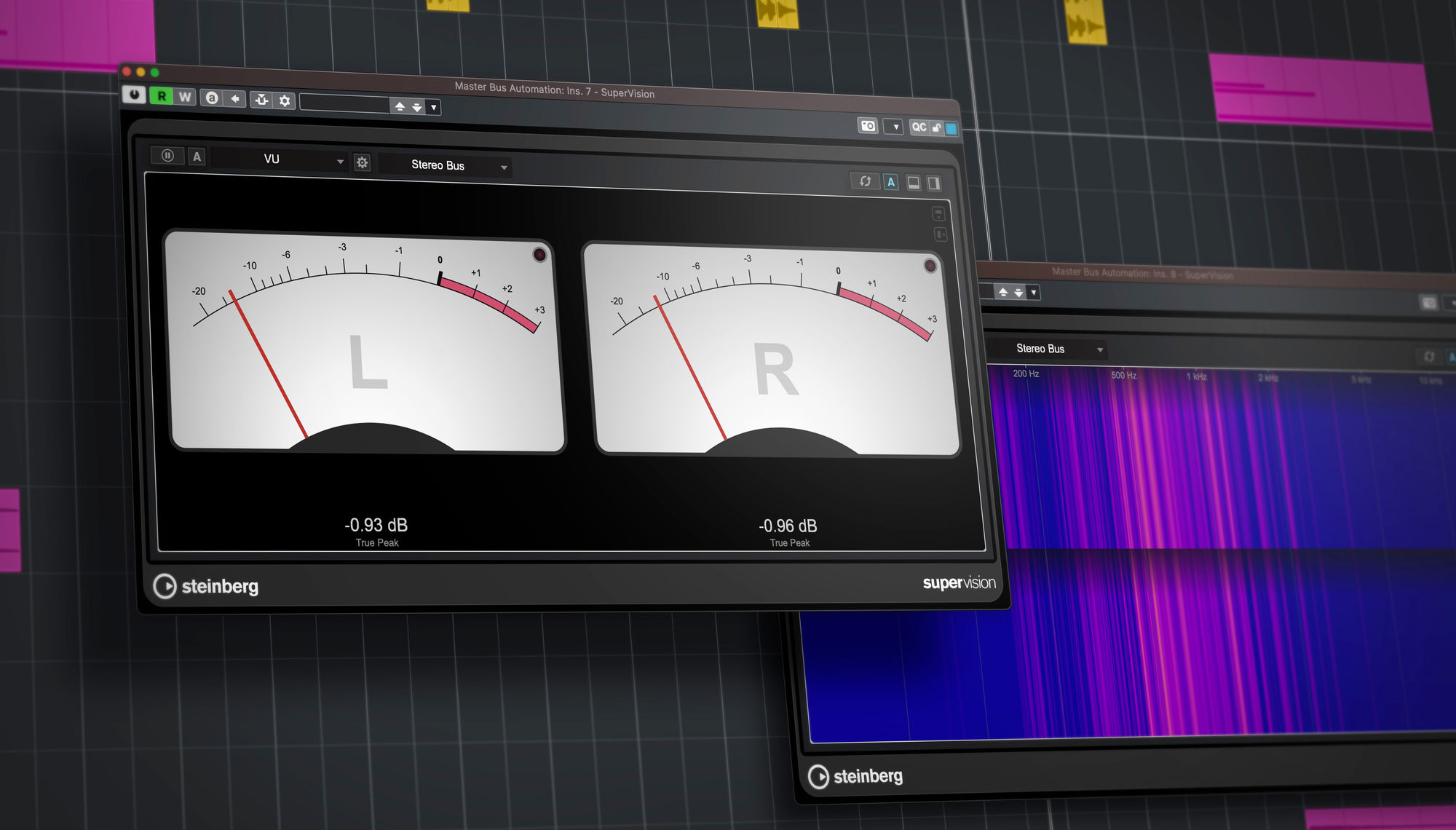 Cubase 12新增多个实用的SuperVision模块,包括VU表、频谱键盘、相位平衡表、音量和响度全息图,以便更好监控工程的每个维度。
