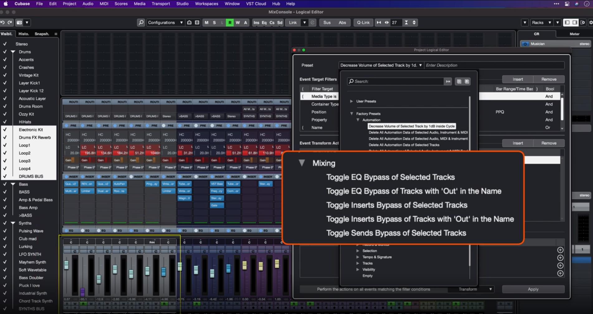 拥有Cubase强大的逻辑功能,就能以多种形式来自定义并打造自己的工作流程。Cubase优化了工程和MIDI的逻辑编辑器,输入的变量和变量MIDI插件都有了新界面,新预制浏览器和诸多新功能、过滤器。Cubase 12还创造了一系列新预制来演示如何使用新功能创造自定义流程的灵感。