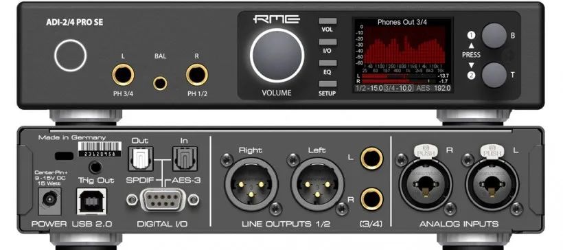 ADI-2/4 Pro SE是一个2通道模数转换和4通道数模转换器,有着专业的768kHz转换精度和工作室品质保证,当然也内置有DSP处理,出色的耳机放大器,超低底噪4.4mm Pentaconn平衡耳机输出,并可连接入耳监听耳机。