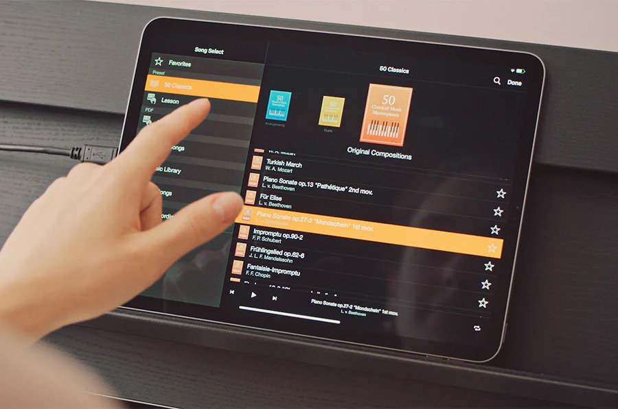 内置丰富的乐曲,现可通过Smart Pianist App轻松操作