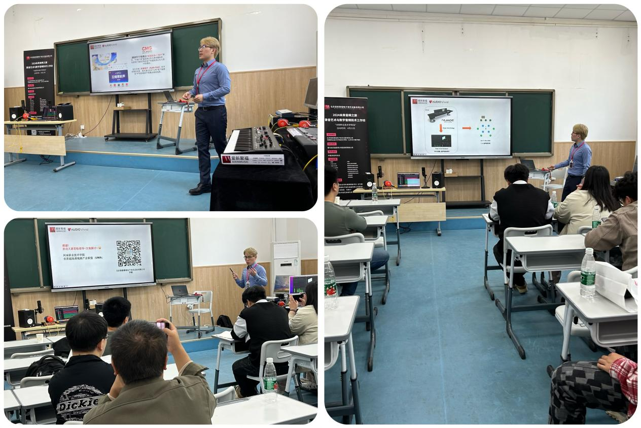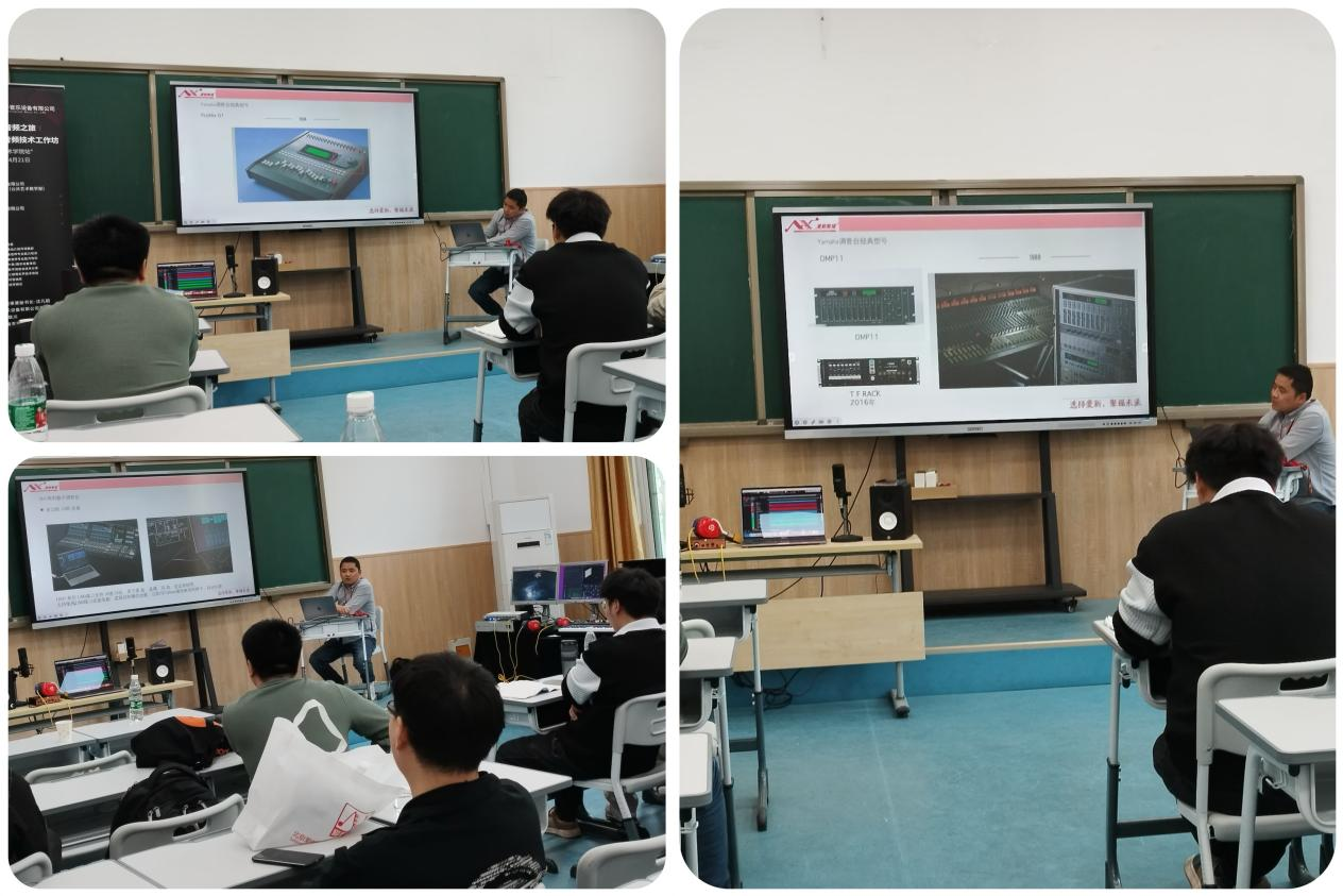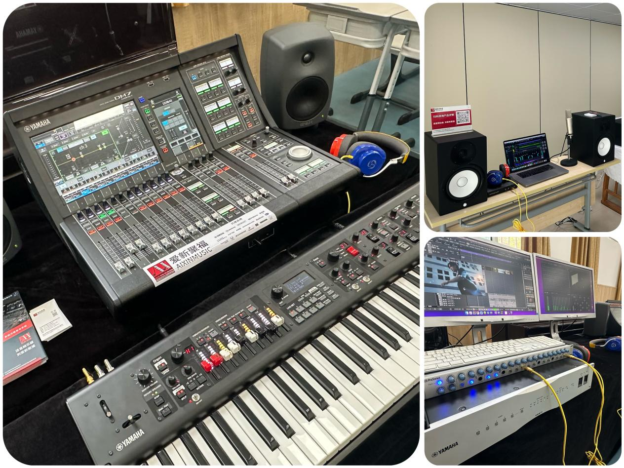 除了精彩的讲座,爱新聚福还在现场展示了Yamaha录音系统套装,Yamaha DM7数字调音台系统,Steinberg Nuendo三维菁彩声双耳渲染制作系统、佳怡耳监听耳机等知名品牌的最新音频设备,为院校师生打造的深度交流与学习平台,同时也助推了院校相关专业的蓬勃发展。活动现场同学们的交流氛围热烈,共同探讨未来音频行业的发展。