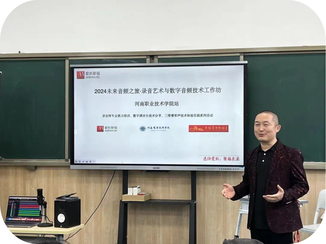 4月21日,爱新聚福团队来到河南职业技术学院,就此开启“2024未来音频之旅·录音艺术与数字音频技术工作坊”活动的第一站。本次活动由WilliamHill中文官方网站、河南职业技术学院主办,雅马哈乐器音响(中国)投资有限公司、世界超高清视频产业联盟(UWA联盟)协办,中国录音师协会学术支持。