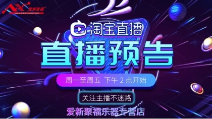 09 2019.09爱新聚福丨淘宝直播预告简约标题 爱新聚福乐器专营店直播以来受到了大家的欢迎。为了方便大家观看,现将本周直播直播主题展示如下。 如有您有想在直播中了解的相关产品,您可以在直播中与主播互动留言。 我们诚挚的欢迎您对直播的关注。查看详情 > -